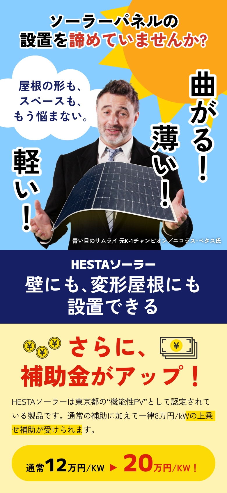 他社では「屋根が小さいので設置できません」と言われて諦めかけていました。でもHESTAソーラーは薄くて軽いので、問題なく設置できてびっくり。補助金も利用できて、想像以上にお得でした!