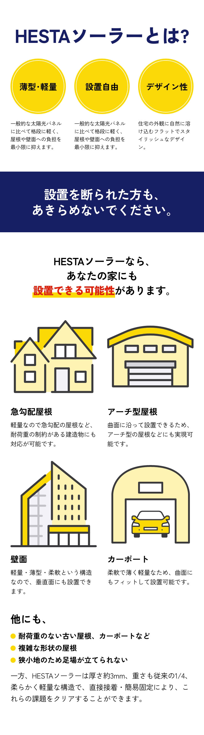 HESTAソーラーは薄型・軽量なので、これまで設置が難しかった屋根にも対応可能です。まずは無料シミュレーションでご確認ください!